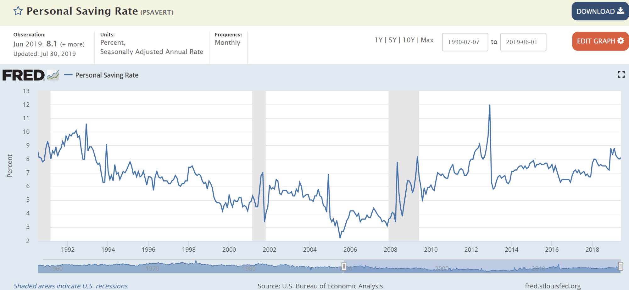 For July, consumer confidence was in our “green zone” – retail sales surged, personal consumption continued to expand, and savings rates kept steadily climbing: