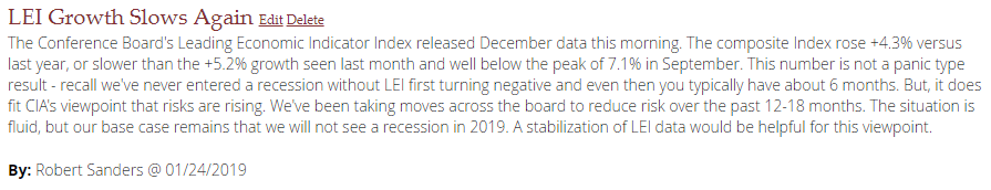 While there are a handful of things that have to “go right” to have a great economic year, we’re still in a good place. Even without all of these elements “teetering” in the right direction, a supportive economy will serve as a tailwind. And right now, the three most important economic indicators that forewarn a recession – Yield Curve, Wage Inflation, and LEI – are all in solid (or decent) shape.