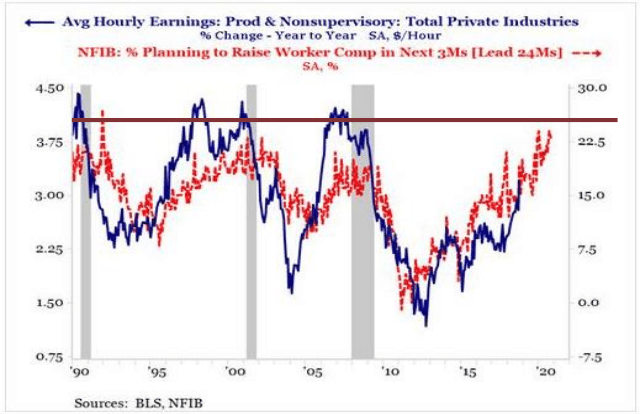 Currently, paychecks are on the rise. This development is good news to a point – while workers get more money, corporations make less. So, this positive point runs the risk of turning negative. Right now, we’re at a safe 3.2%, with the 4% mark historically being the “danger zone.”