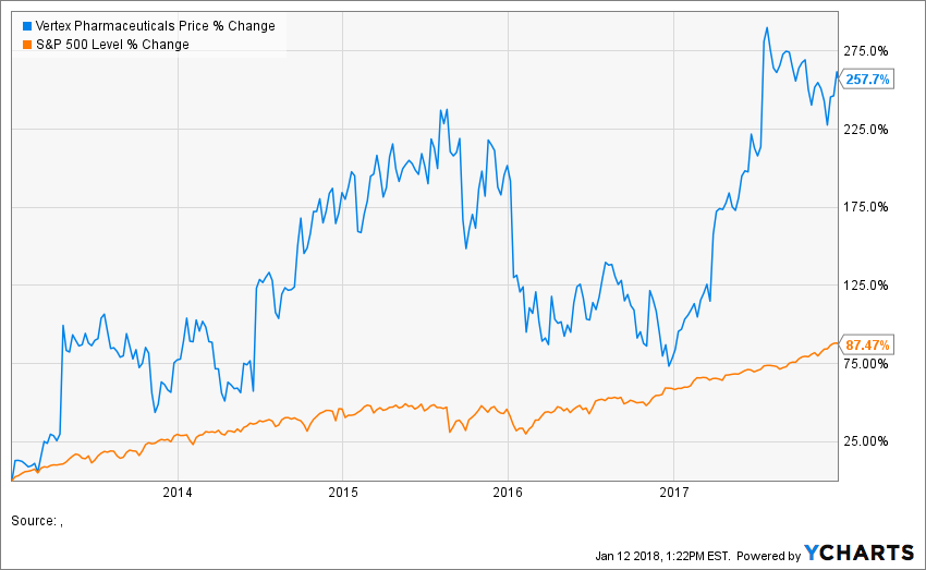 The portfolio also features a selection of growth-oriented stocks that exert strong Washington influence while aggressively pursuing growth strategies. One example I brought up earlier is Vertex Pharmaceuticals. Vertex was added to the Policy Opportunity Portfolio in 2013. As the chart below indicates, VRTX has returned over 250% since 2013, compared to 87% for the S&P 500.